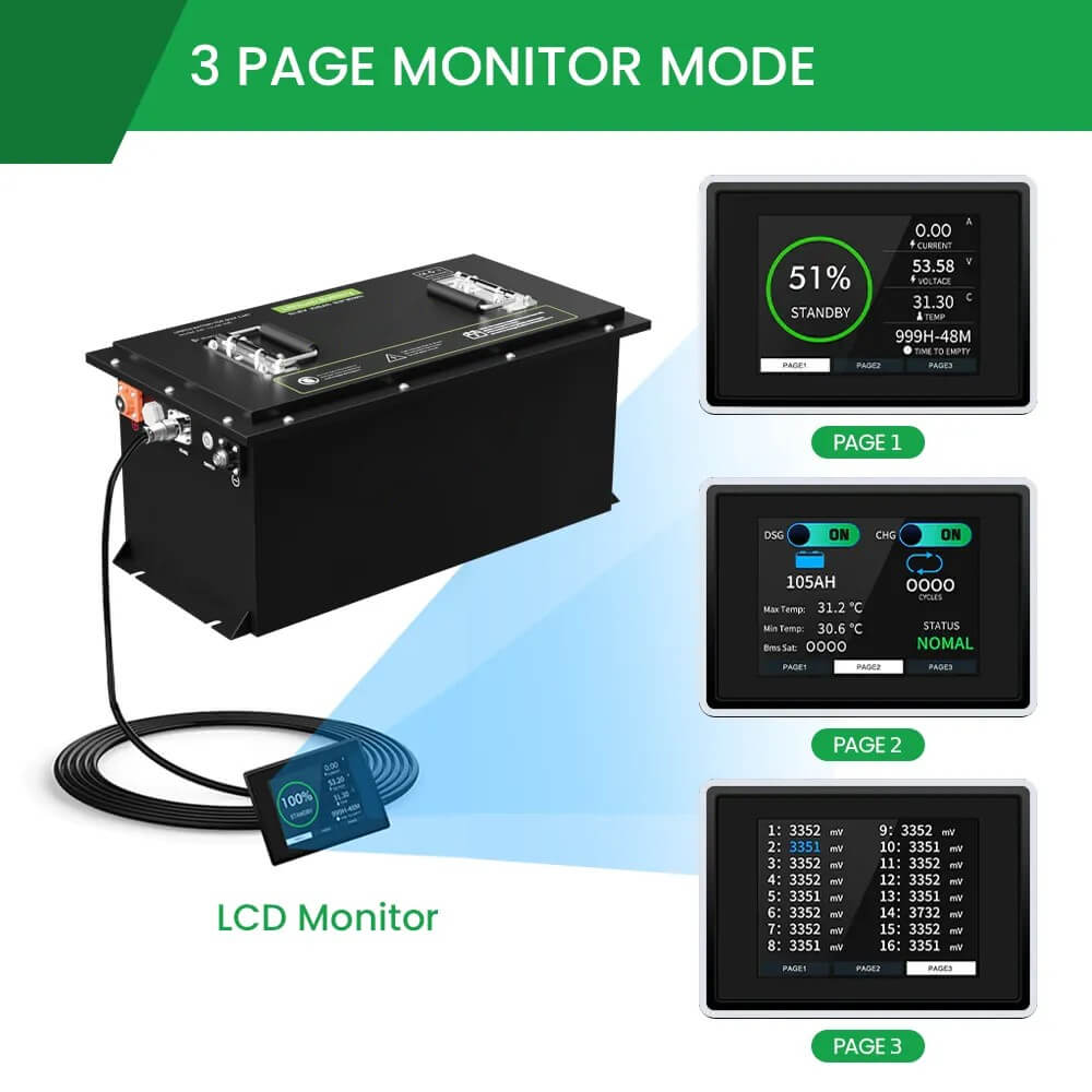 | LFP48-105 | 51.2V | 105Ah | 5376 Wh | 530*290*240 mm | ≈46 kg |
