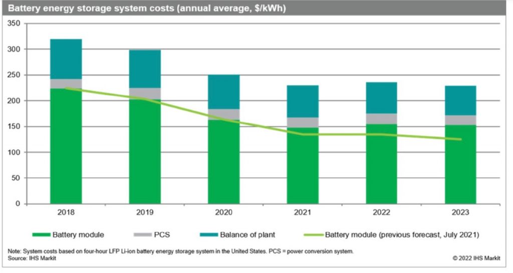 V nedávnej bielej knihe IHS Markit predpovedala, že prudký nárast cien surovín pozastaví ďalšie znižovanie cien batérií EV do roku 2024. Táto analýza predpovedala, že priemerné ceny batérií EV na rok 2022 budú o 5 % vyššie ako v roku 2021, a to najmä v dôsledku zvýšenej auto- priemyselný dopyt po lítium-železofosfátových (LFP) batériách.